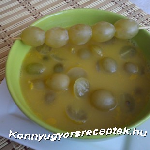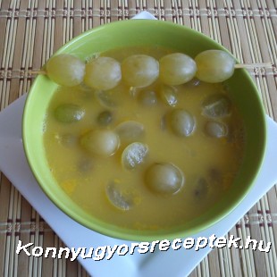 A szőlőlevet egy lábasban felforraljuk, közben beletesszük a mézet és belereszeljük a citrom héját. A tojások sárgáját csomómentesre keverjük egy kevés forró szőlőlével és a leveshez öntjük. Azonnal levesszük a tűzről, hogy a tojás ne csapódjon ki. Végül beletesszük a megmosott és félbevágott szőlőszemeket, és hagyjuk kihűlni. (Ha édesnek találjuk, adhatunk hozzá egy kevés citromlevet!) Hidegen tálaljuk, amit ízlés szerint tejszínhabbal díszíthetünk.