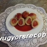 Az epres gombócokat eper öntettel kínáljuk.