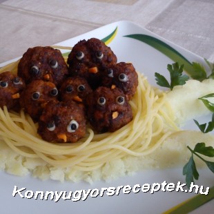 A darált húst elkeverjük a tojással, a zúzott fokhagymával, a fűszerekkel és a (vízbe áztatott, majd kinyomkodott) kenyérrel. Golyókat formázunk, melyeket bő forró olajban készre sütünk. A burgonyát sós vízben megfőzzük, majd a vajjal együtt megtörjük. A fasírtgolyókra a majonéz és a bors segítségével szemeket készítünk, sárgarépából pedig apró csőröket. Tálaláskor a tört burgonyából faágat készítünk, a megfőtt spagetti tésztából fészket, amibe belehelyezzük a fasírt fiókákat.