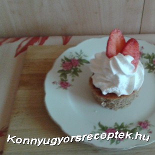 A végén díszítjük , a tejszínhabba szúrunk 2 friss eper szelezett.
