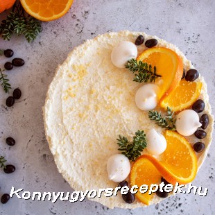 A krém elkészítését a tejszín habbá keverésével kezdjük. A félig kemény tejszínhabhoz hozzáadjuk a főzés nélküli zselatinport és tovább keverjük, míg kemény habot kapunk és félre tesszük. A túróhoz hozzákeverjük a xilitet, a narancs levet, 1 teáskanál reszelt narancshéjat. Végül hozzákeverjük a zselatinos tejszínhabot és a kihűlt torta tetejére kenjük.