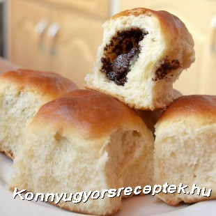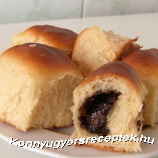 1 dl langyos tejben és 1 kanál cukorban felfuttatjuk az élesztőt, majd a többi hozzávalókkal összegyúrjuk. Az elkészült tésztát meleg helyen kétszeresére kelesztjük (kb. 30 – 40 perc),majd 1 cm vastagságúra kinyújtjuk. A kinyújtott tészt kb. 10x10 cm-es kockákra vágjuk, a széleit ecsettel megvizzezük (könnyebben összeragad hajtogatáskor). A közepére mogyorókrémet teszünk majd a szemben levő sarkokat felhajtva, egyhén összenyomogatva becsomagoljuk a tölteléket. Az összehajtogatott rész a tepsi aljára kerüljön. Az így elkészített buktákat kizsírozott tepsibe helyezzük egymás mellé. Meleg helyen (kb. 15 perc) még megkelesztjük, a tetejét megkenjük tojás fehérjével és kb. 180 fokon süthetjük is.