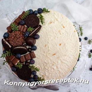 A díszítéshez olvaszthatunk csokit, amit lecsorgathatunk a torta oldalán és díszíthetjük csokikkal, áfonyával.