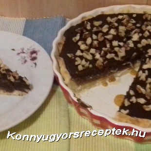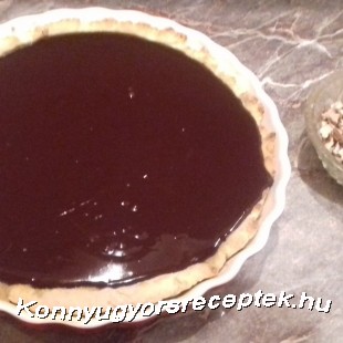 Tegyük hűtőszekrénybe. Amint elkezd bekötni a csokiréteg is, hintsük be darabolt dióval a torta tetejét!