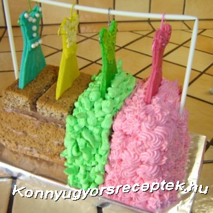 2.Kb.2-3 mm vastagságúra kinyújtjuk és tetszés szerint ruhát szabunk ki belőle.Mindegyikből 2 db-ot ami közé vagy jégkrémes pálcikát vagy én műanyag kávé keverő pálcát raktam ami segítségével a tésztába tudtam szúrni.Ne felejtsük a ruhafogast is közé illeszteni. Tetszőlegesen díszítsük ki a ruhákat cukorgyönggyel,színes cukorral.