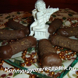 6.A tejcsokoládét az evőkanál olajjal vízgőz felett felolvasztjuk és a kihűlt rudacskák mindkét végét belemártjuk,majd hideg helyre tesszük,hogy rákeményedjen.