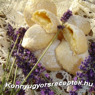 4.Előmelegített sütőben 210 C fokon 10-15 perc alatt világosra sütjük. A sütőből kivéve porcukorral bőven meghintjük.