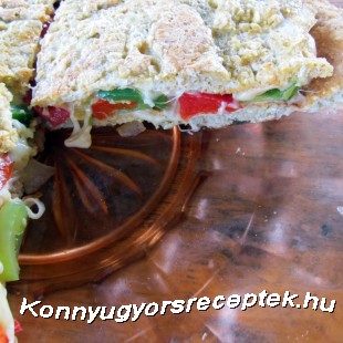 Összeállítás: amiben a tésztát sütöttük, visszatesszük a tűzre, és alulra egy lap tortillát teszünk, erre jön a reszelt sajt fele, majd a párolt-sült zöldségek, a sajt másik fele, végül a második tortilla Annyi ideig melegítjük, h a sajt megolvadjon és összeragassza a szendvicsünket!