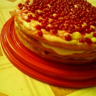 A tortalap lehet 1 rétegű vagy többrétegű is. Beletöltjük a közepébe a pudingot és a felszeletelt banánnal körberakjuk. Tetejére szintén puding kerül és rá a ribizli szemek.