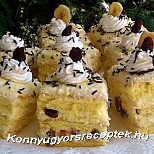 Az alsó lapra kenjük az egyharmad részt,megszórjuk a fele mazsolával és a kandírozott gyümölcsdarabkákkal.