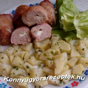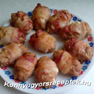 Hogy ne kelljen a fasírtot fent a gázon olajban sütni, ezért találtam ki, hogy baconbe göngyölöm, s a tepsiben meg tudom sütni.