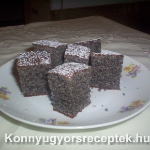 Az egész tojásokat a cukorral és tej felével habosra keverem, majd szép apránként hozzáadom a darált mákot és a sütőporral elkevert lisztet, belereszelem a citromhéjat, hozzáadom a maradék tejet és a kavart tésztáknak megfelelően kikavarjuk.