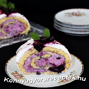 Ezután vonjuk be a tekercset a félretett fehér krémmel, majd ízlés szerint díszítsük áfonyával.