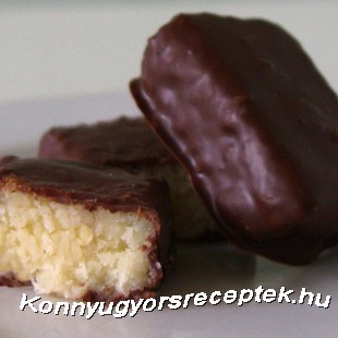 A csokit megolvasztjuk, belemártjuk lelocsoljuk vele a kókuszos téglalapokat és rácsra vagy sütőpapíros tepsibe tesszük, hogy a csokimáz megdermedjen.
