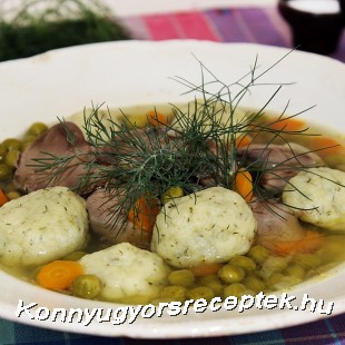 Az összegyúrt tésztából ezután nedves kézzel formázzunk diónyi gombócokat, majd tegyük bele a levesbe, várjuk meg még feljön a tetejére, és főzzük még pár percig.