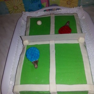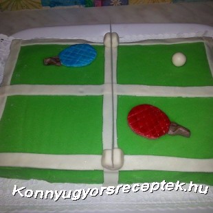 Az ütőket, a labdát és a fehér szegélyeket marcipánból készítettem.