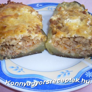 A cukkiniket hosszába kettévágjuk, a magvas részeket kivágjuk. Kicsit besózzuk, állni hagyjuk. A füstölt szalonnát apró kockákra vágjuk. Egy kicsi olajjal sütjük, amikor már kezd sülni a vöröshagymát belevágjuk és megpirítjuk. Beletesszük a paradicsomot és a fűszereket, majd a darált húst is beletesszük. Kevergetve készre sütjük. Közben a megmosott rizst a szokott módon megfőzzük, majd belekeverjük a húsba. Ezzel a töltelékkel megtöltjük a cukkiniket, tejfölt teszünk a tetejére, majd megszórjuk reszelt sajttal. Kiolajozott tepsibe tesszük a töltött cukkiniket és lefedjük fóliával, majd aa sütőbe készre sütjük.
