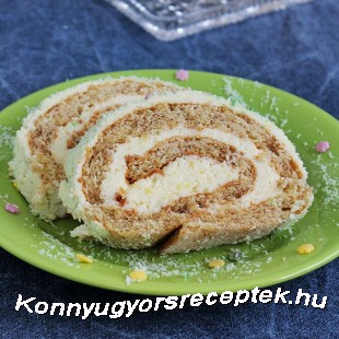 Amikor a tészta langyosra hűlt, vegyük le a konyharuhát, majd a sütőpapír segítségével tekerjük fel, és úgy hagyjuk teljesen kihűlni.