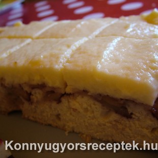 Így is nagyon finom, de aki még élvezetesebbé szeretné tenni, házi krémes krémport utasítás szerint kell elkészíteni, és ha kihűlt, a tetejére kenni, 1-2 órára hűtőbe kell tenni, majd lehet szeletelni.