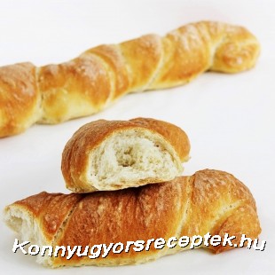 Az utolsó pihentetés után többször csavarjuk meg mindkét tésztát, majd helyezzük egy sütőpapírral bélelt tepsire, egymástól kicsit távolabb.