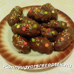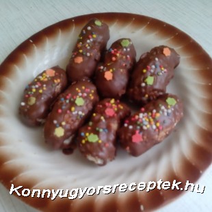 Amikor letelt a 15 perc, kivettem a fagyóból a kókuszrudacskákat, s villa segítségével belehempergettem a megolvadt csokoládéba.