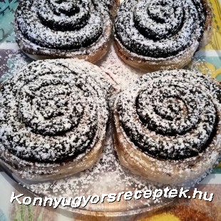 Szorosan feltekerjük, mint a bejglit. Megkenjük kevés vízzel, majd 1, 5 cm szélesen felszeleteljük és sütőpapírral bélelt tepsibe rakjuk a csigákat.