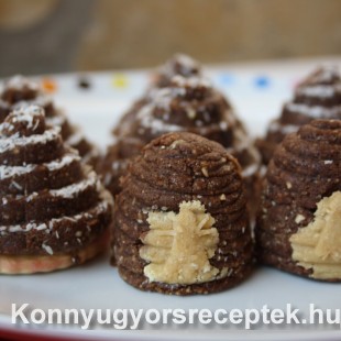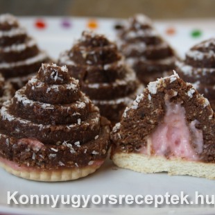 Piramis formát megszórjuk kókuszreszelékkel, majd formázzuk vele a masszát.