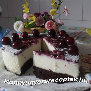 Egy fóliába betekerjük a tésztát és betesszük a hűtőbe, amíg elkészítjük a tölteléket. A vizet a cukorral felteszünk a tűzre és sziruposra főzzük. Hozzáadjuk a cseresznyét és ha újra forrni kezd lezárjuk. Hagyjuk hűlni a szirupos cseresznyét, azután leöntjük a folyadékot és összekeverjük a búzadarával. Így felszívódik a maradék lé.