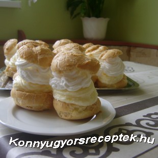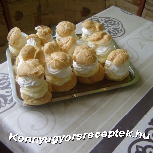 8. A megsült fánkokat kettévágjuk, és a krémmel megtöltjük.