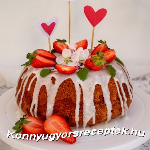 Ha kihűlt a kuglóf készítsünk rá cukormázat, amihez a porcukrot a tejjel összedolgozzuk (egy sűrű, de folyós állagot kell kapnunk). Dekoráljuk eperrel, mentalevéllel a kuglóf tetejét.