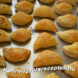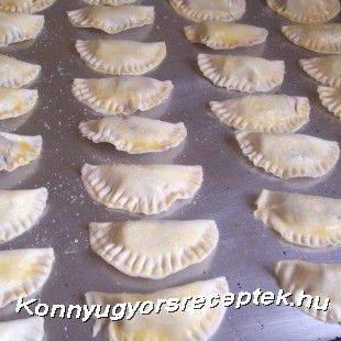 A leveles tésztát kinyújtjuk, majd nagyobb pogácsaszaggatóval az egész tésztából köröket szaggatunk. Kb. felébe, 1 teáskanálnyi lekvárt teszünk, a másik felébe pedig, trappista sajt kockákat vágunk és azokat rakjuk bele. Egy fokkal finomabb, a füstölt trappista sajt.