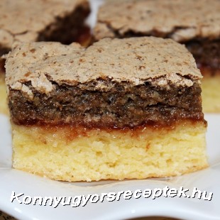 Ezután a diós habot egyenletesen kenjük rá a lekvár tetejére.