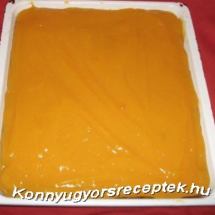 A krémhez a vanília pudingokat a cukorral együtt megfőzzük a narancslében.