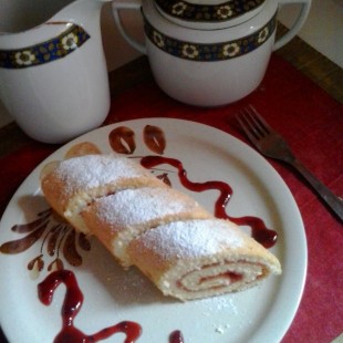 Ha kisült kihűtjük és lekvárral megkenjül és feltekerjük.