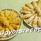 Tepsibe sütőpapírt terítek, s szépen rárendezem ezeket a sütiket, majd tojással megkenem, s kb. 10-15 perc alatt meg is sülnek. Könnyen le lehet venni a formáról a sütiket, de azért vigyázzunk, mert még elég forró. Pár percet várunk, hogy kihűljön kicsit a forma is, s utána rátekergetjük a következő tészta csíkokat, s azokat is megsütjük.