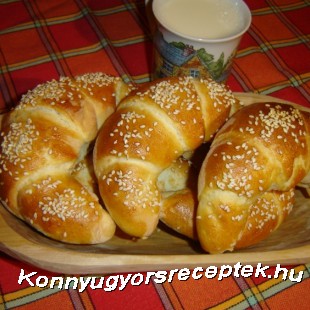 4. A kifliket tepsibe rakjuk és 1 órán keresztül meleg helyen kelesztjük. Sütés előtt mindegyik tetejét megkenjük tojással,megszórjuk tetszőlegesen szezám maggal,len maggal,mákkal,köménnyel,reszelt sajttal.