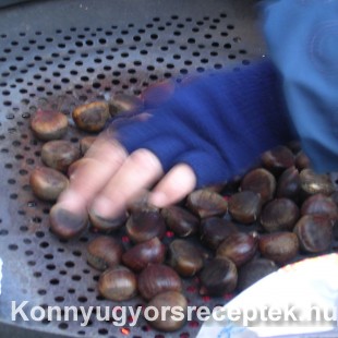 A friss gesztenyét éles késsel mindkét felén nem mélyen, de elég hosszan bevágjuk. Gázrezsón egy tálban, vagy a platnin, de akár egy kandalló forró lapján is megsüthetjük. Kb 2-3 perc múlva már látszik, hogyan válik szét a héja a bevágásnál. Pár percenként megforgatjuk és kb. 10-15 perc múlva kész. Egy tálba ruhával lefedem, hogy sokáig forró maradjon, így könnyebben lejön a héja. Ha nagyon száraz a gesztenye, be lehet áztatni.