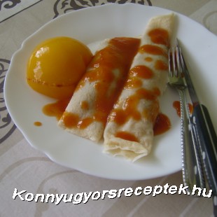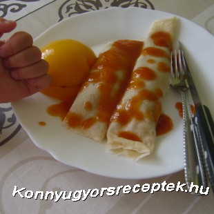 4. A baracklekvárt egy kevés vízzel felforraljuk, hogy folyós legyen és leöntjük vele a palacsintákat.
