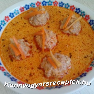Ha forr a leves, akkor az előzőleg összekevert húsgombócokat belerakosgatjuk.