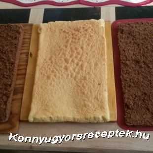 A kakaós piskótát félbe vágjuk, és hagyjuk kihűlni mind a 3 piskóta lapot. Míg hül, elkészítjük a Párizsi krémet.