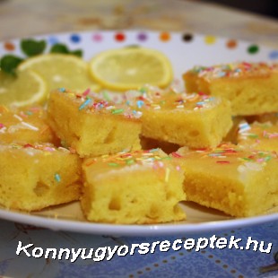 2. Még melegen rákenjük a citromlé-cukor keverékét, és megszórjuk cukordarával vagy csokidarával.