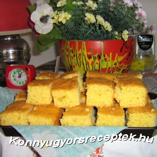 A tojásokat szét választom, összekeverem a porcukorral, és a citrom lereszelt héjával, plusz a levével, apránként hozzákeverem a sütőporos lisztet, majd a felvert habbal összekeverem, hogy ne essen össze a tészta, és utána kivajazott, kilisztezett előmelegített sütőben kb. 30 percig sütöm, és bármilyen öntetettel lehet tálalni.