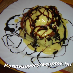 8. Leöntjük a vaníliakrémmel, és folyékony csokoládéval díszítjük.