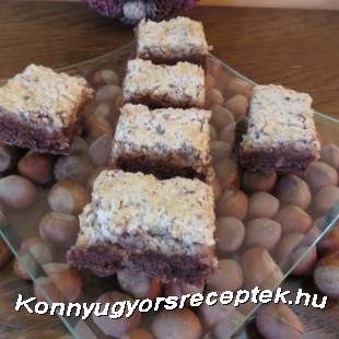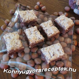 Amíg sül felverjük a tojások habját a cukorral,majd óvatosan hozzákeverjük a mogyorót.
