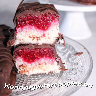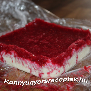 Turmixoljuk le a málnát, majd a kis vízzel és édesítővel forraljuk össze. A már puha zselatinlapokat oldjuk fel benne és öntsük a kókusz tetejére. Tegyük pár órára hűtőbe. Amikor a zselé megdermedt, vágjuk fel és mártsuk a csokoládéba.