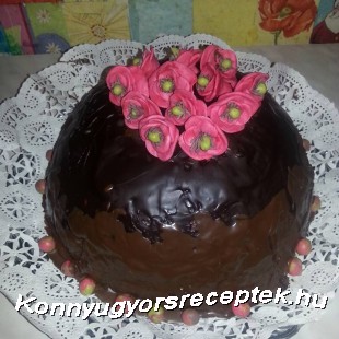 Betesszük a hűtőbe (én egy éjszakára tettem be), majd tálcára borítjuk, a fóliát lehúzzuk, és rácsorgatjuk a forró vízben felolvasztott étbevonót.
