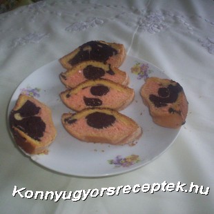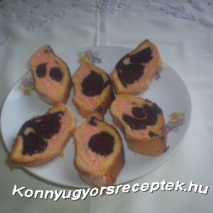 Végül a kivajazott-lisztezett őzgerincformába tetszés szerinti sorrendben egymásra öntöm a masszákat. Előmelegített sütőben közepes hőmérsékletű lángon sütöm. Villanytűzhelynél 300 fokon előmelegítve, 200 fokra mérsékelve 8-10 perc alatt megsül.
