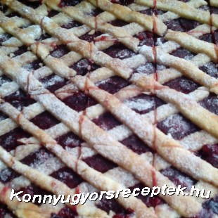 tojást, majd összegyúrjuk a tésztát. Kis labdát formázunk belőle, celofánba csomagoljuk, és 20-30 percre hűtőben tesszük. Előmelegítjük a sütőt. A tészta kb. 1/3-át félretesszük, a többit pedig kinyújtjuk, s egy kiolajozott, kilisztezett tepsibe rakjuk a nyújtófa segítségével.