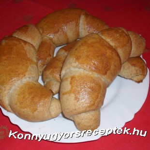 Az élesztőt kis cukros tejben megfuttatjuk, a liszthez adjuk, amibe belekerült a só, a vaj, a langyos víz, az olaj. Szép sima tésztává gyúrjuk, cipót formázunk belőle. Egy kiolajozott fedeles dobozba tesszük, és egy éjszakára mehet hűvös helyre. ( spajz, hűtő). Másnap sütés előtt 1-2 órával a konyhapultra tesszük, hogy ” magához” térjen. Kőr alakúra nyújtjuk, és 6 db-ra vágjuk. Kis olajjal megkenjük, kifli formára csavarjuk, sütőpapírral bélelt tepsibe tesszük, majd ismét kelesztjük.Tojással lekenjük, majd 220 C fokos- gőzös- (kis lábasban vizet teszünk a sütő aljába) sütőben szép pirosra sütjük.