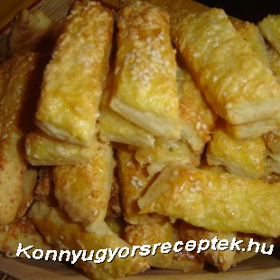 1.A szobahőmérsékletű margarint, sütőporral elkevert lisztet, túrót, tömlős sajtot, sót jól összedolgozzuk.